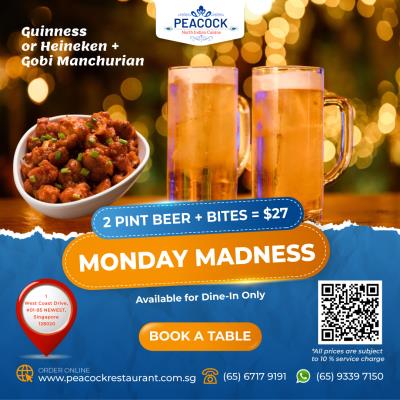 Kick start your week at #Peacock with our Monday Madness, 2 Pint Beer & Bites on...